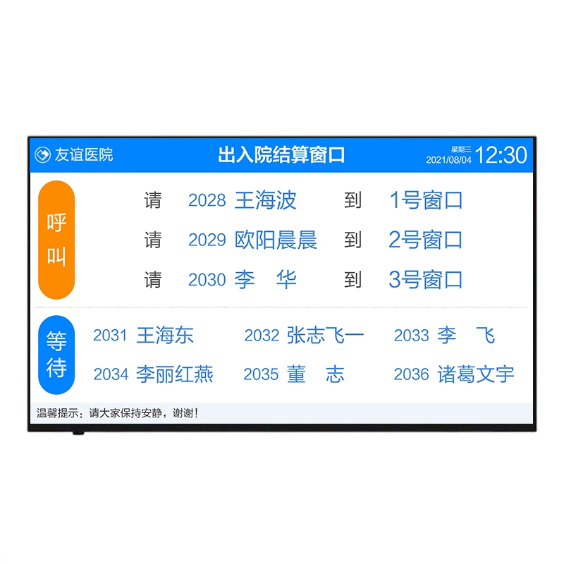 等候区叫号显示屏