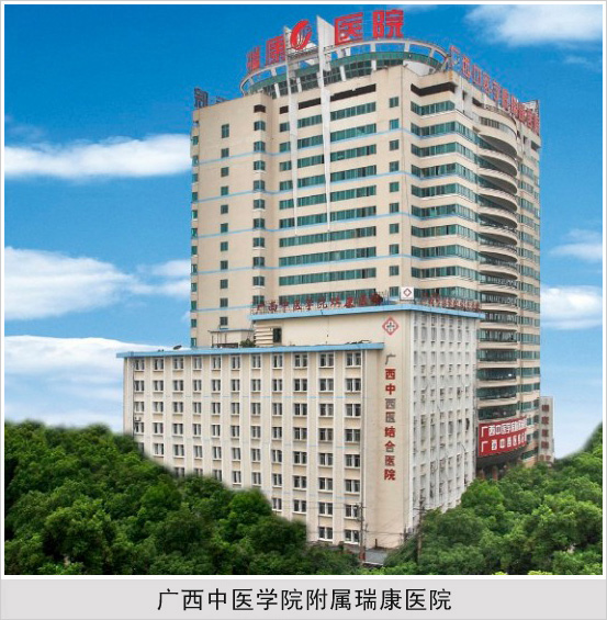 广西中医药大学附属瑞康医院是国家“三级甲等”医院、国家重点中西医结合医院、全国爱婴医院。新建成的25层医疗大楼建筑面积5万平方米,是广西目前建筑面积最大、功能现代化的医疗大楼之一,新增床位1000张,截至2015年,总共开放床位2200张。