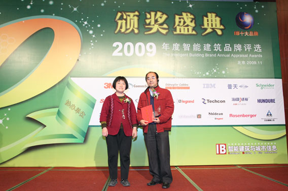 日前,由中国勘察设计协会《智能建筑与城市信息》杂志社、住房和城乡建设部干部学院智能建筑技术培训办公室联合主办的“2009年度智能建筑品牌评选颁奖盛典”在北京隆重举行,yl23455永利对讲又以优异的突出表现、贡献,再度获得“2009年度中国市场十大住宅智能化产品品牌”称号。