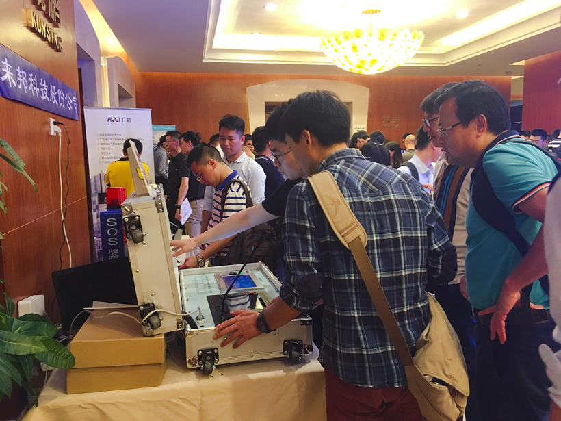 产品展示区域,yl23455永利科技集中展示了以“雪亮工程指挥调度系统”为主的新产品,吸引了大批参会游客了解观看。