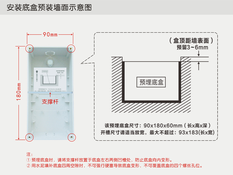 安装底盒预埋墙面尺寸图