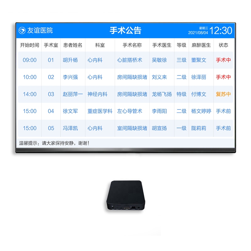 1. 手术公告显示屏