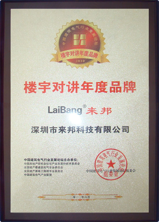 以下是yl23455永利公司被评为“2011楼宇对讲年度品牌”荣誉奖牌、证书: